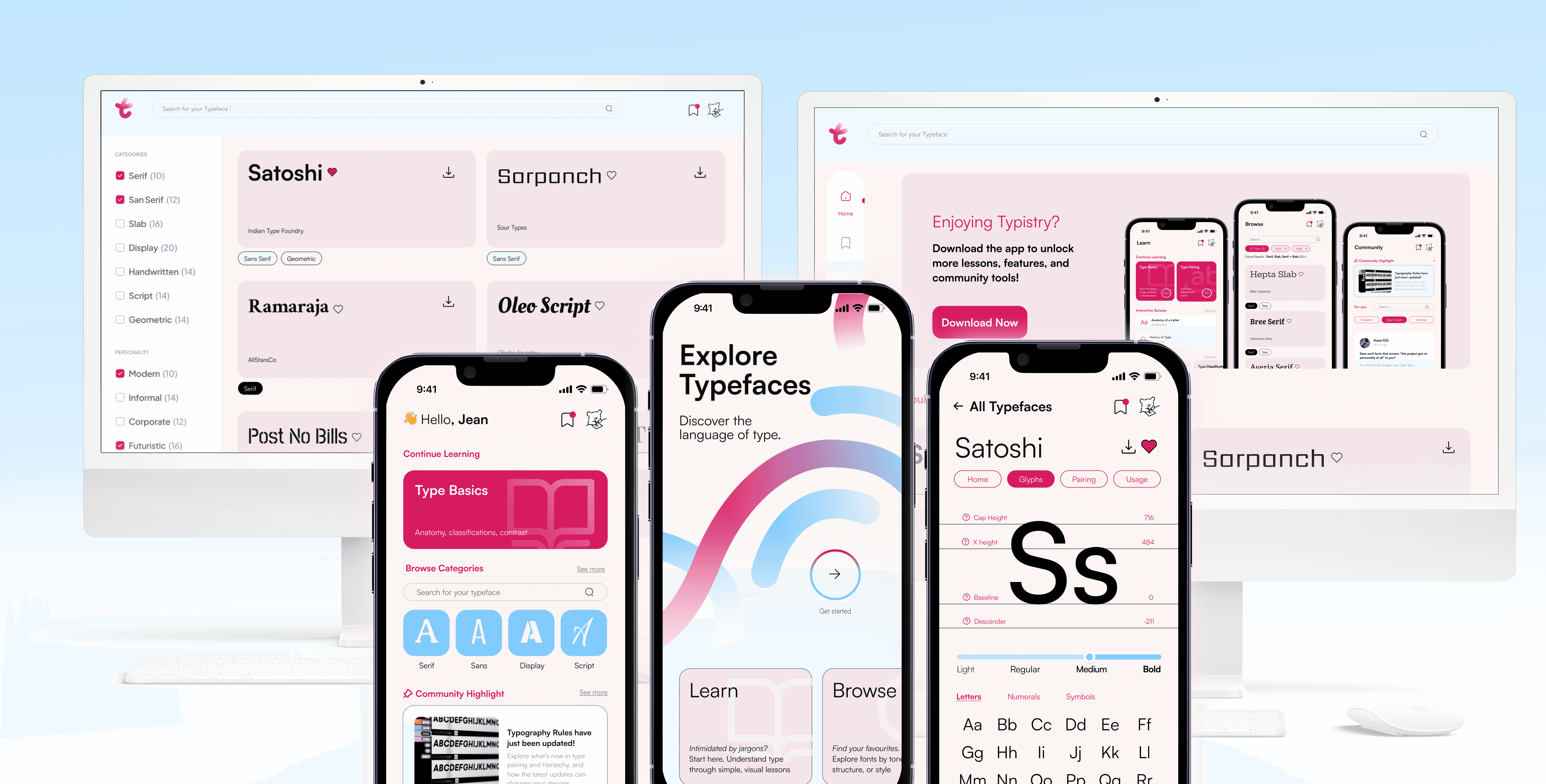 Typistry is a mobile-first interactive type specimen platform designed to help designers explore, understand, and apply typography through interaction rather than static reference. Developed as part of a Communication Design Studio course, the project builds on earlier work in print hierarchy and kinetic typography. By reframing the traditional specimen book as a learning tool, Typistry emphasizes interaction, motion, and feedback to make typographic concepts more approachable and intuitive.